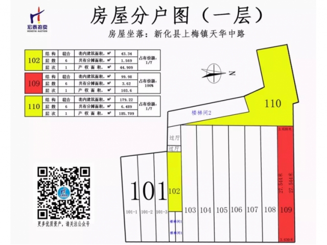 一層商業(yè)房產(chǎn):102號(產(chǎn)權(quán)占有份額:1/7),109號(產(chǎn)權(quán)占有份額:100%),110號(產(chǎn)權(quán)占有份額:1/7);